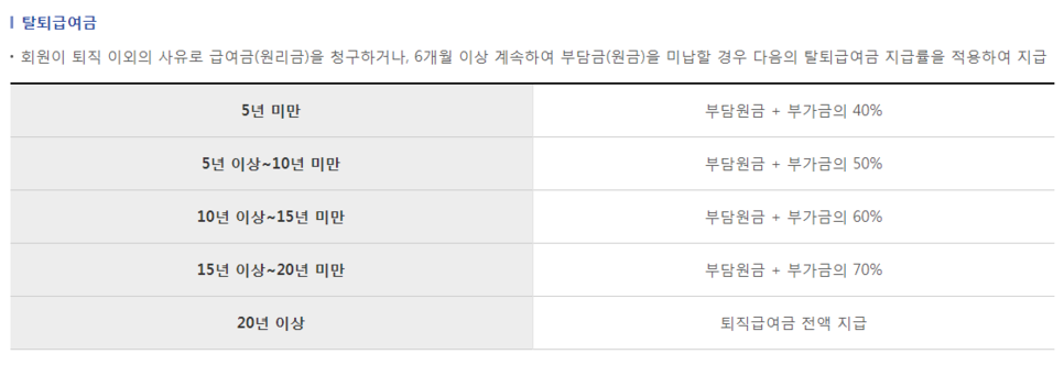 탈퇴급여금 지급률을 적용하여 지급합니다